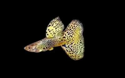 The yellow double swordtail cobra guppy is a beautiful and unique guppy fish. Its body displays a beautiful gold lace pattern, while its tail resembles that of a double sword.