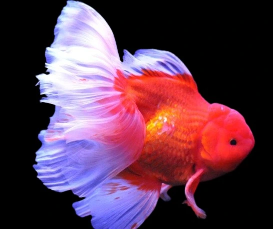 The Panda Oranda Goldfish is beloved for its striking black-and-white markings, resembling the face of a panda bear. With long flowing fins and a two-tone wen, it’s a favorite among aquarists.